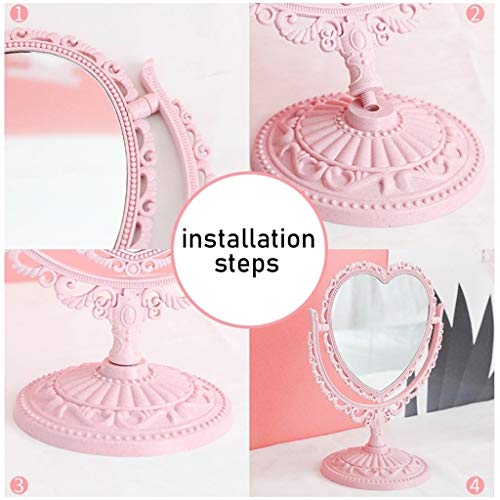 Vanity Mirror On Stand, ABS 360° Swivel Tabletop Mirrors Travel Portable 3X Magnification with Stand Beauty Cosmetic Mirrors (Color : Pink)