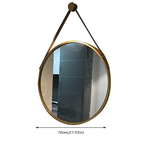 WXF Hanging Wall Mirror with Chain, Round Wall Mirror Modern Metal Framed Mirror Decorative Hanging Vanity Mirror for Bedroom Bathroom and Living Room (Color : Black, Size : 70cm)