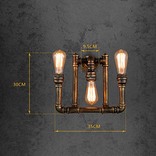 GLBS Retro Creativity Sconce E27 Iron Wall Lamp Indoor Living Room Study Art Wall Light Restaurant Bar Cafe Three Head Water Pipe Lighting Fixture Commercial Household Illumination Decoration
