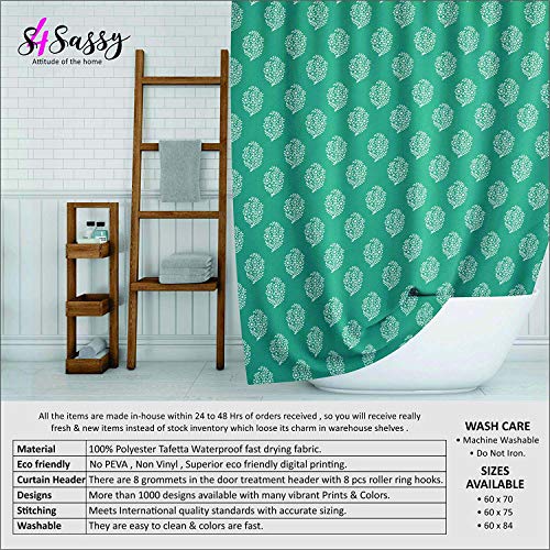 S4Sassy Green Leaves & Magnolia Floral Printed Bathroom Curtain Mildew Resistant Waterproof Shower Drapes-60 x 75 Inch