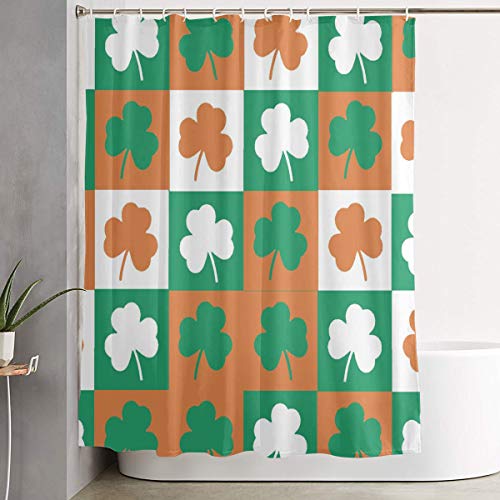Clovers in Squares Pattern Shower Curtain 3D Printed Non-Fading Bathing Curtain Long Lasting Waterproof Home Decor Shower Curtain Set with 12 Hooks