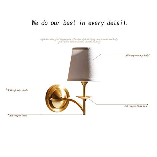 ETH American Copper Wall Lamp Cotton and Linen Simple Living Room Balcony Walkway Bedroom Bedside Stair Wall Lamp Single Head Pure Copper Lamps Bright
